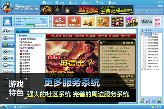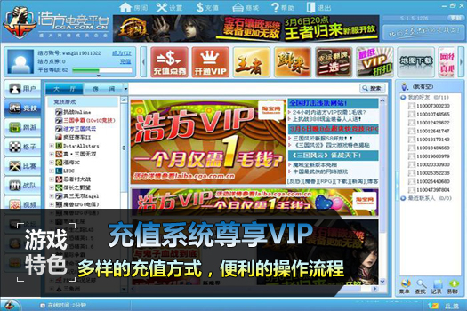 浩方对战平台是世界最大的游戏对战平台之一。可以进行诸如CS,War3,SC,FIFA等等流行游戏的联机对战。