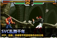 SVC乱舞千年:《SNKVSCAPCOM》 ,以SNK和CAPCOM两家街机2D格斗大厂的人物之间的大乱斗为卖点,吸收了很多高人气人物,圆了一个KOF迷和SF迷的梦。