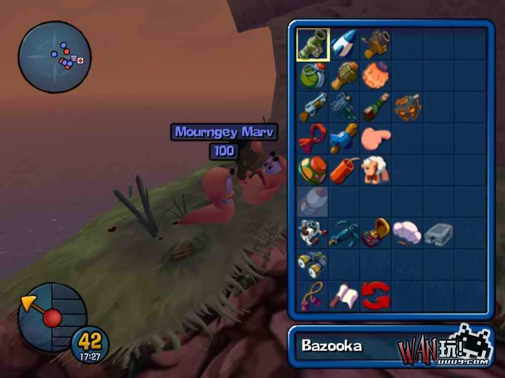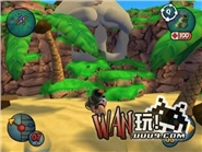 百战天虫3D的操作实际上还是很像2D的百战天虫游戏,唯一的不同就是指针键被来做武器的瞄准,而移动的操作就成了第一人称射击游戏那样的操作,用鼠标来控制方向。除去地图的问题,游戏和原来的百战天虫相比没有更大难度,但是因为增加了三维立体的效果,到达你所选择的有利位置常常要花很多的时间。