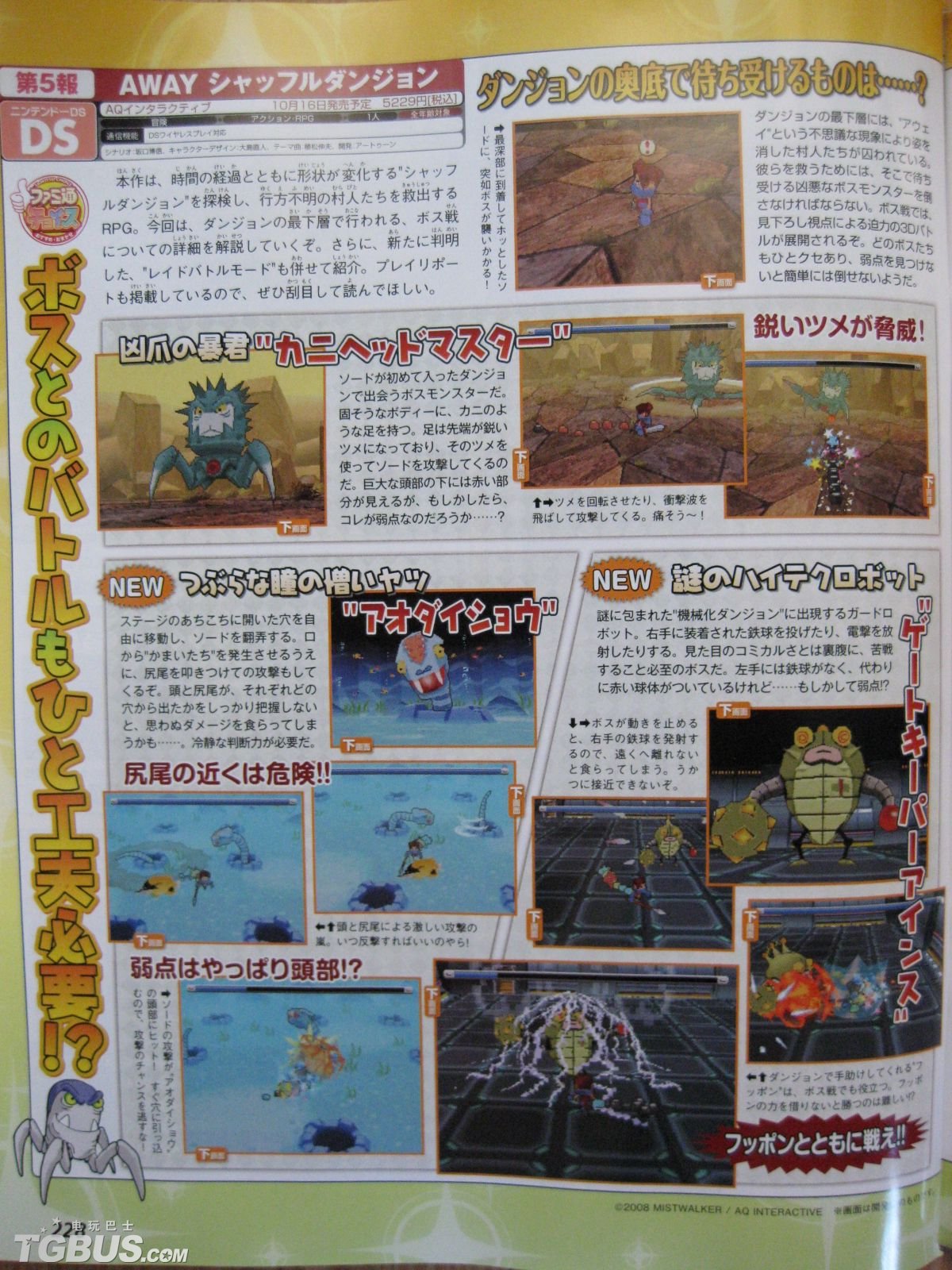 由日本AQInteractive公司预定2008年2月28日发售的NDS迷宫探险动作RPG《Away:随机迷宫》。本作由“FF之父”坂口博信担任剧情架构、过去曾参与“SONIC”系列制作的大岛直人负责角色设定,并由植松伸夫负责音乐,Artoon负责开发制作。玩家所扮演的主角,为了拯救村民找出失踪的原因,必须挑战可怕的“随机迷宫”。