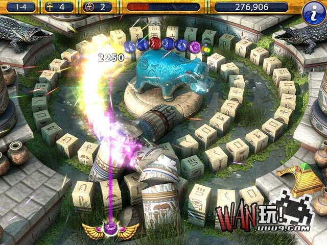 新版埃及祖玛拥有更出色的视觉效果,游戏背景定在埃及,有88个关卡和4种游戏难度。