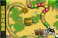 祖玛游戏能在当今多如牛毛的游戏中脱颖而出取决于它计设的几大优级点:古老的界面,神秘的印加背景音乐,加上游戏的主人翁一只青蛙坐在其中,吐出各种颜色的珠子,石青蛙环绕着石青蛙的是载着彩球的轨道,彩球会沿着轨滚动。石青蛙吐出彩球进入轨道,轨道上颜色相同的彩球,数量达到三个以上就会消除得分。