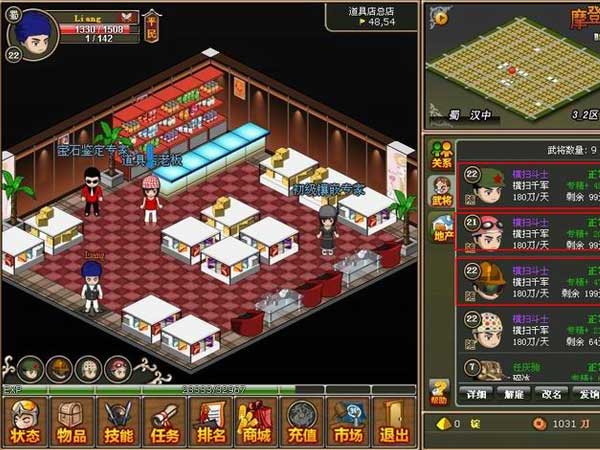 摩登三国带你回到三国时期,重现历史:进入游戏马上让你置身于战乱纷飞的热血沙场。无需诧异,因为这就是摩登三国!烦感了简单的砍杀与打斗,绚丽的技能招式给你新的感觉:真正厉害的招式是要在沙场上悟得的,等级的提升会获得新的招式,战争画面真实火暴,让玩家感觉到前所未有的紧张感。超爽的手感和细腻的动作堪比街机:速度流畅,不管在任何情况下都能保持着流畅的游戏过程。